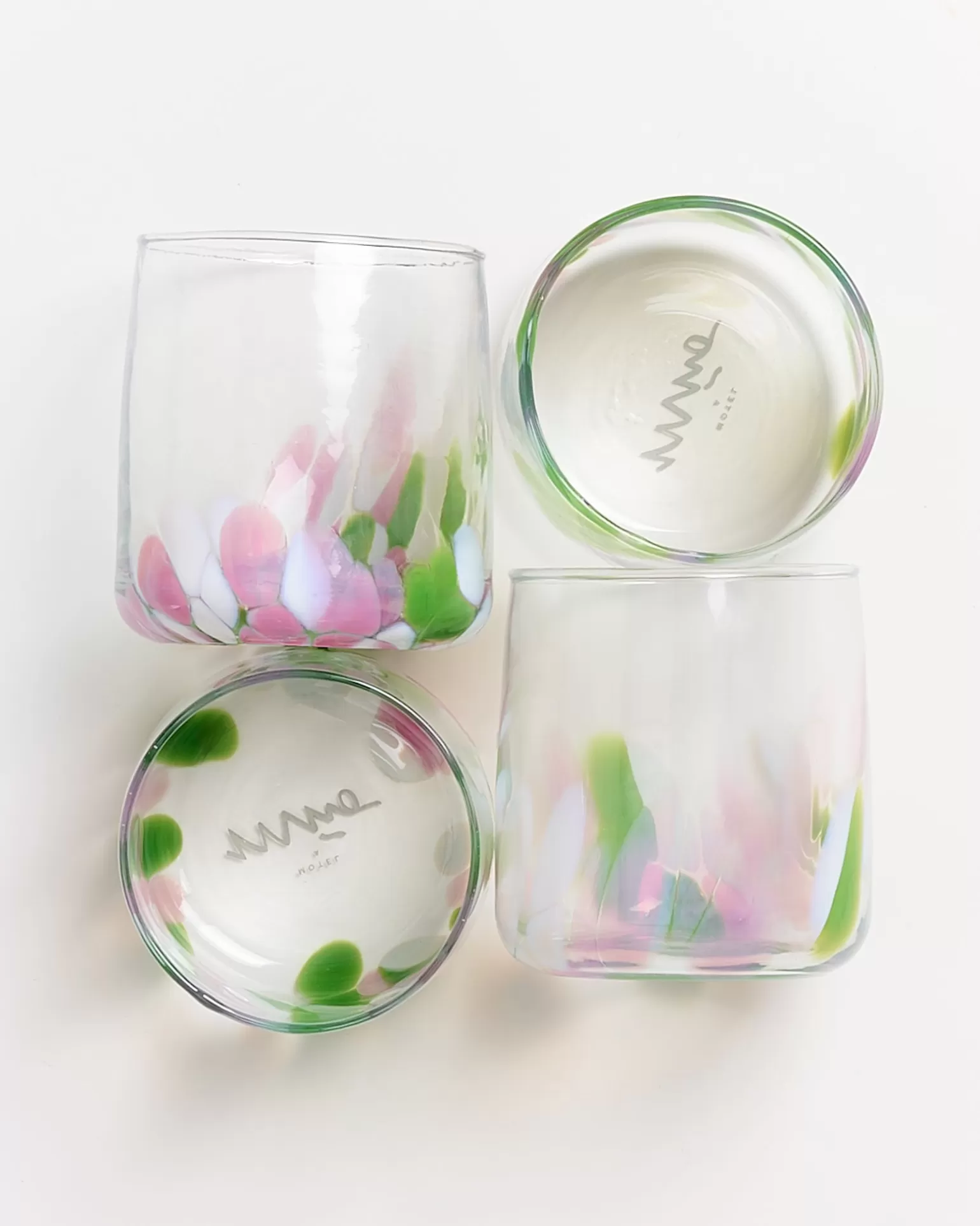 Discount Motel a Miio Alegria Set Of 4 Glasses Small big drops pink green