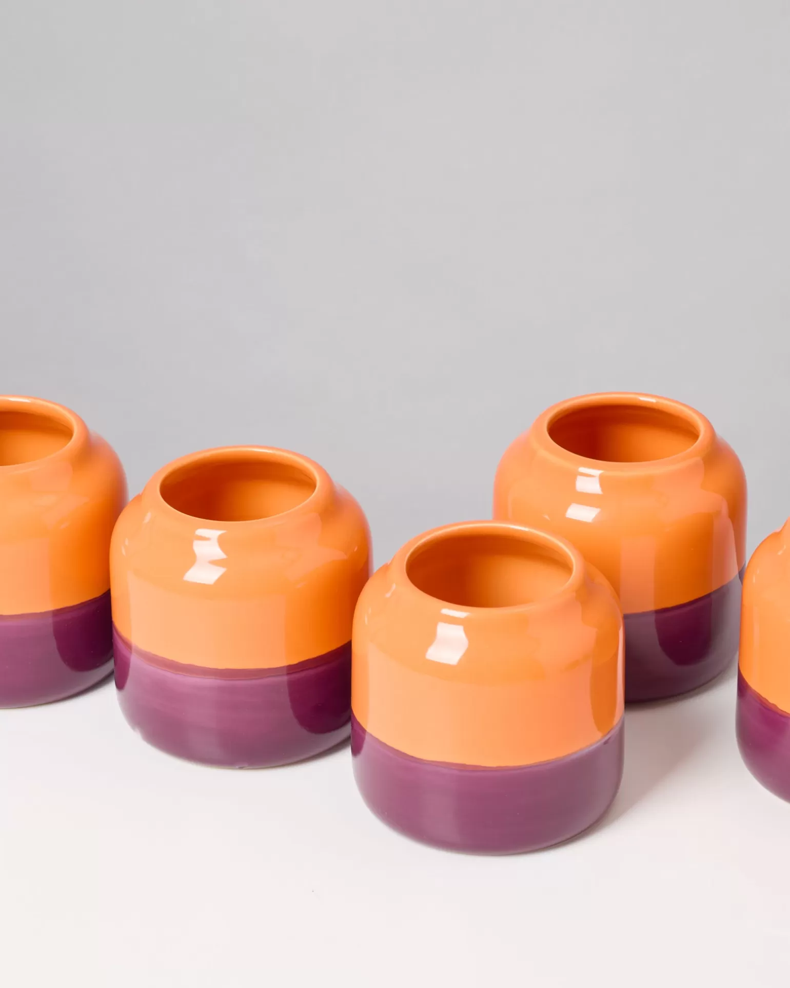 Material: StonewareDimensions: ø 6cm Opening ø 9,5cm Belly, 9,5cm HSeries: BebéColor: orange, darklilacOptics: glossy…